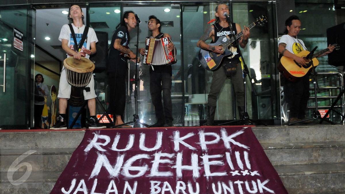 Tolak Keras Revisi Uu Kpk Band Punk Ramaikan Gedung Kpk Foto Liputan6 Com