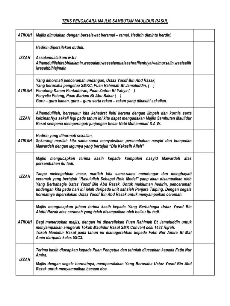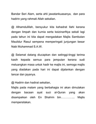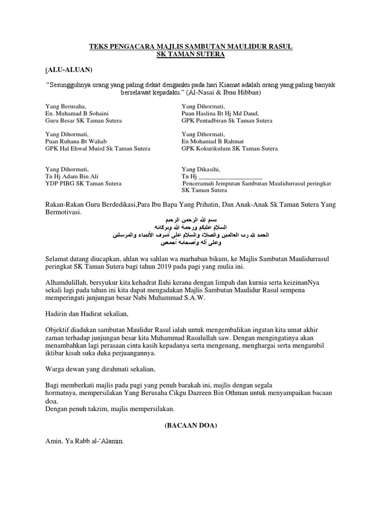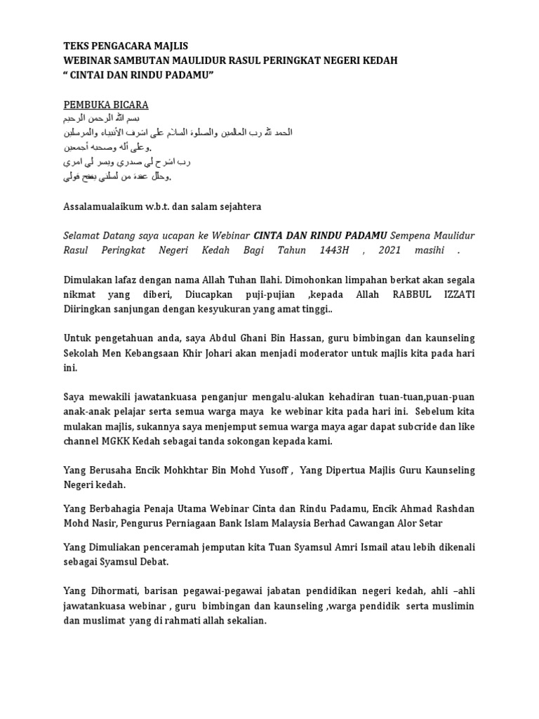Teks Pengacara Majlis Maulidurrasul Pdf