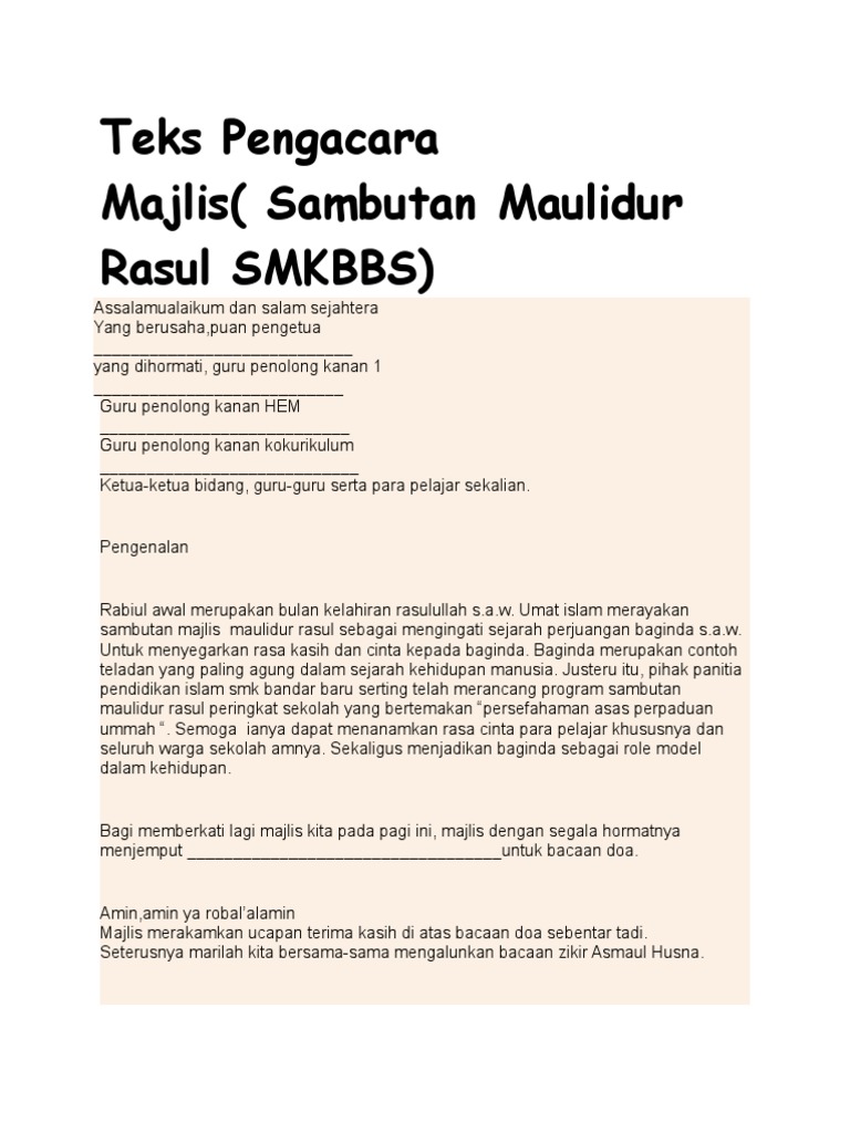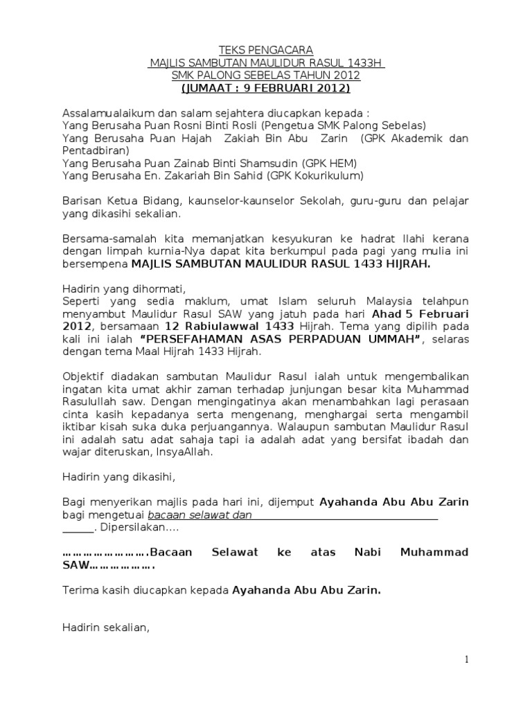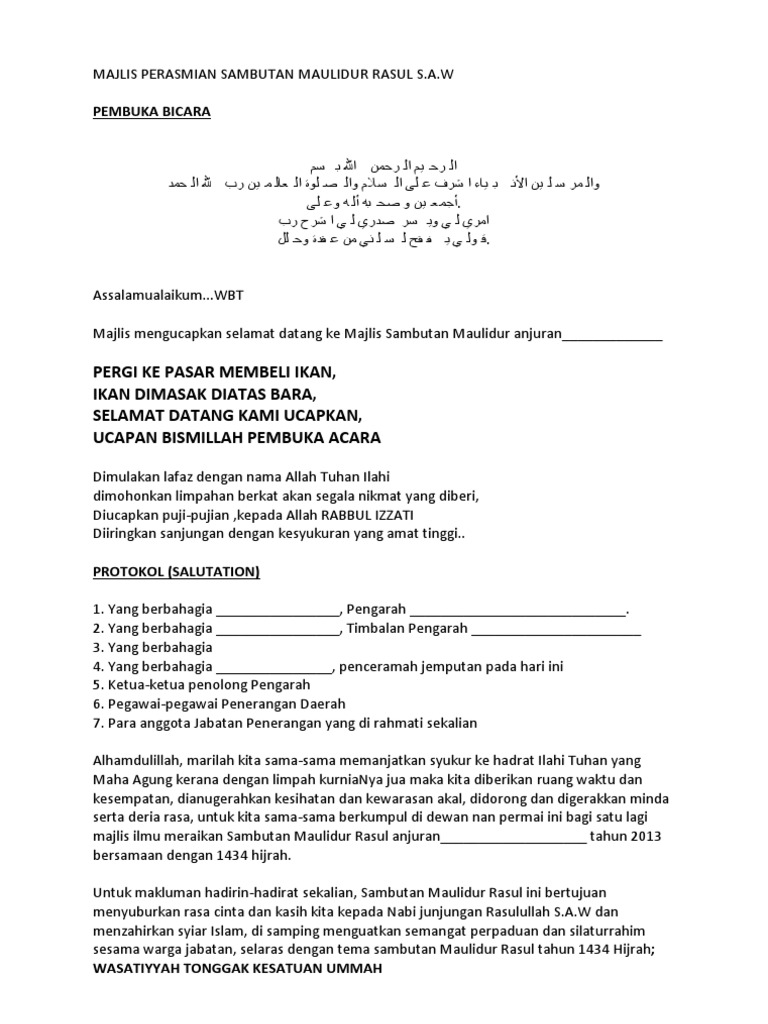 Teks Ucapan Pengacara Majlis Maulidur Rasul Pdf